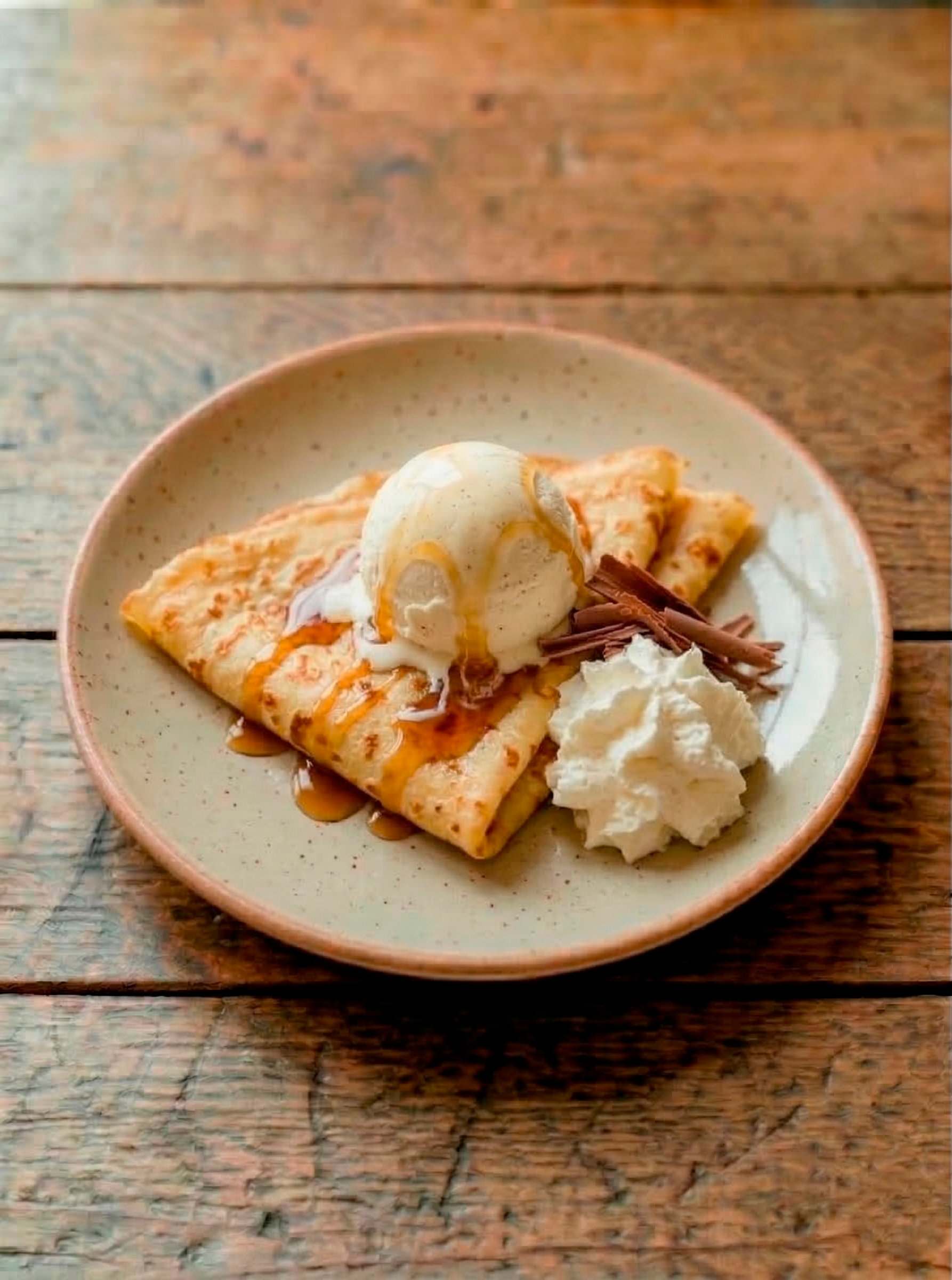Crepe con sirope,nata y helado