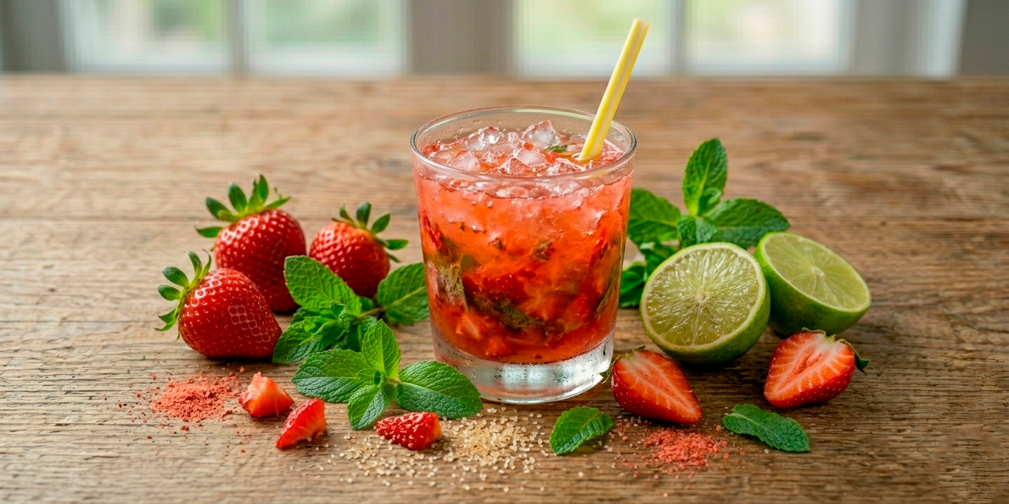 Mojito con un toque de fresa para darle un sabor diferente igualmente espectacular
